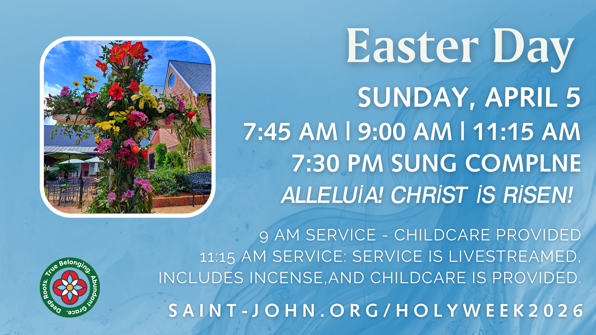 Our 11:15 AM Easter service is a traditional Rite II Service of Holy Eucharist. This service is filled with joy,